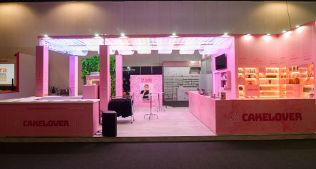 Desde o momento em que os visitantes se aproximam do stand, eles foram envolvidos por um design inteligente e sofisticado, perfeitamente alinhado com a identidade da Cakelover.