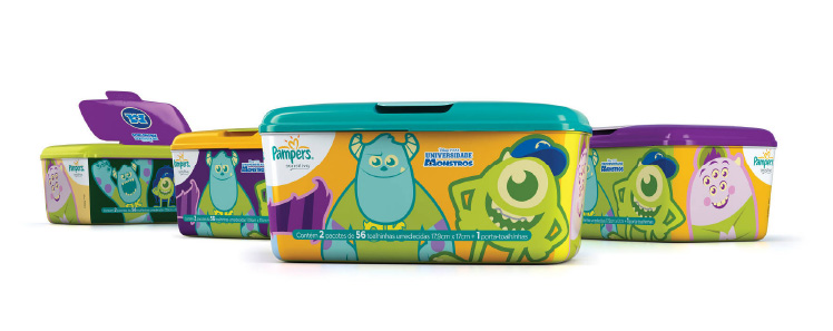Pampers, marca número 1 no mercado de fraldas, desenvolveu sua linha de lenço umedecidos, contando com a parceria estratégica da Disney, criamos um conceito com as artes dos personagens de um dos filmes mais queridos da companhia: Universidade Monstros.
